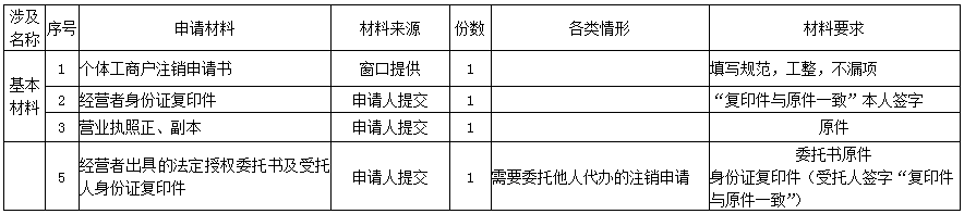 4. 個(gè)體工商戶(hù)申請注銷(xiāo)登記的,應當繳回個(gè)體工商戶(hù)營(yíng)業(yè)執照正本及所有副本。