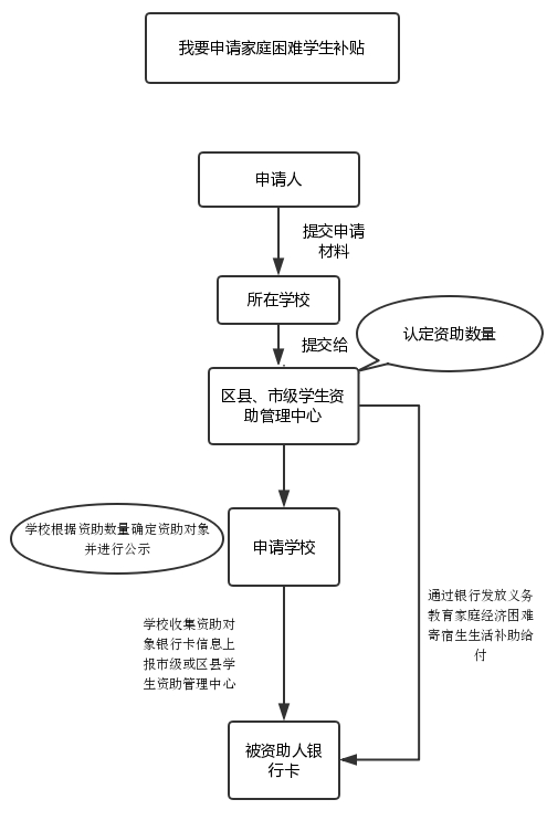 2、市級或區縣學(xué)生資助管理中心認定資助數量,學(xué)校根據資助數量確定資助對象并進(jìn)行公示;(5個(gè)工作日)