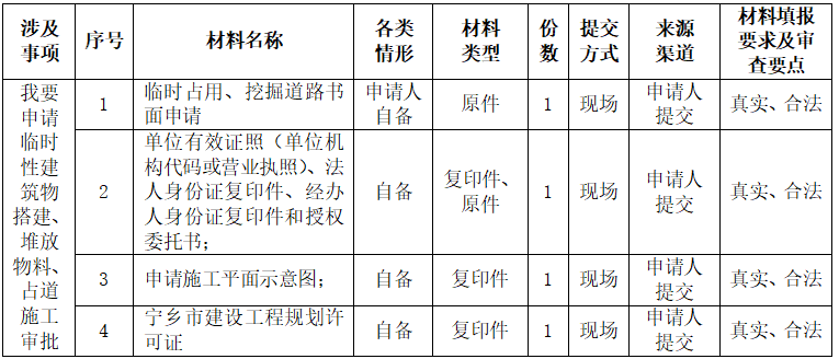 我要辦理申請臨時(shí)性建筑物搭建、堆放物料、占道施工審批