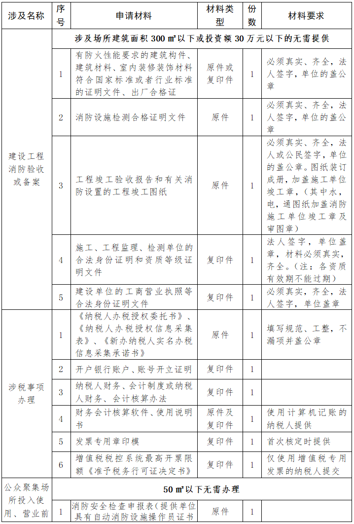 (四)建設工程竣工消防驗收或備案(備注:涉及場(chǎng)所建筑面積300㎡以下或投資額30萬(wàn)元以下的無(wú)需辦理);