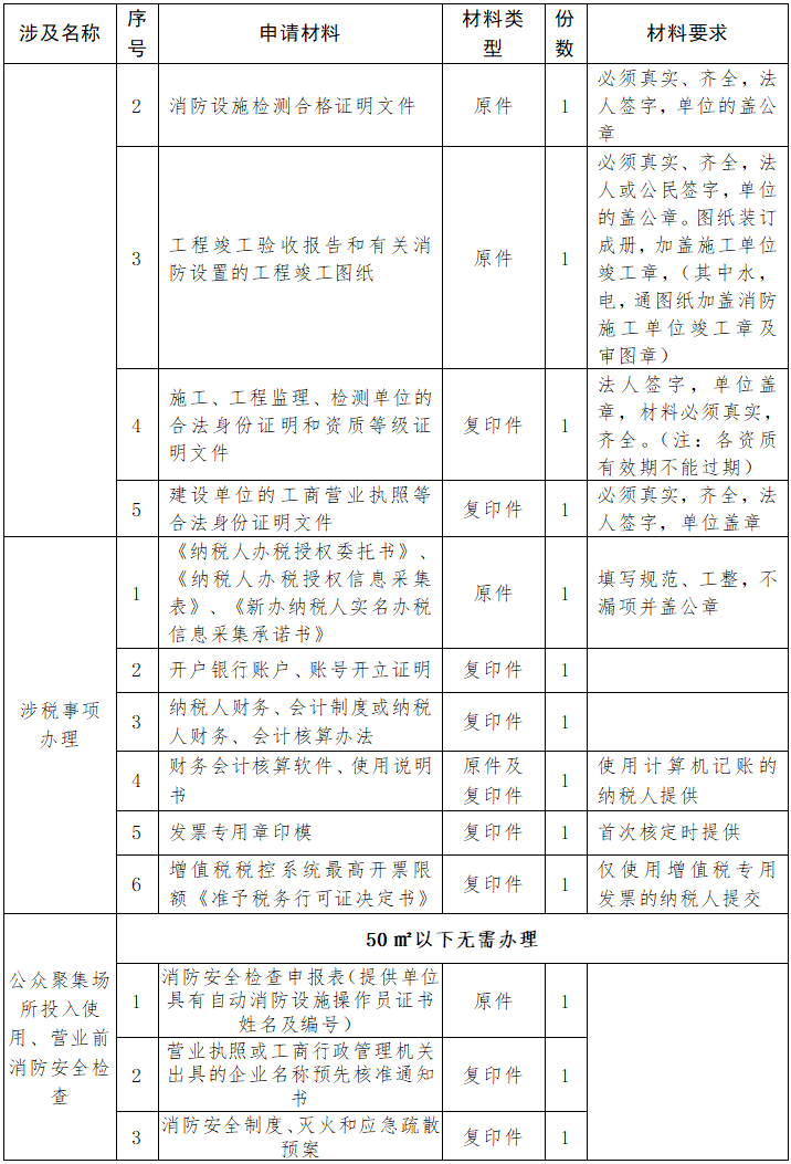 (三)建設工程竣工消防驗收或備案(備注:涉及場(chǎng)所建筑面積300㎡以下或投資額30萬(wàn)元以下的無(wú)需辦理);
