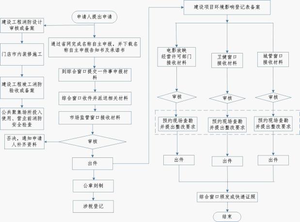 “我要開(kāi)電影院”一次辦流程圖(時(shí)限:12個(gè)工作日)