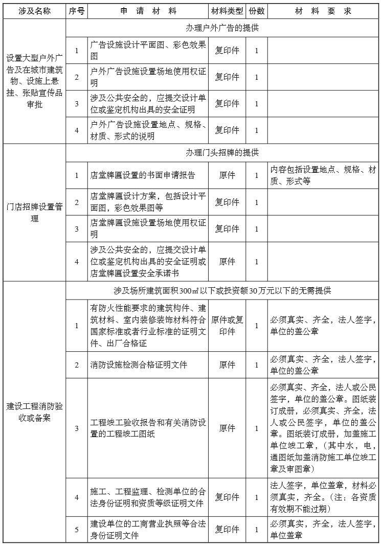 (三) 設置大型戶(hù)外廣告及在城市建筑物、設施上懸掛、張貼宣傳品審批 (備注:辦理戶(hù)外廣告的,需辦此項);