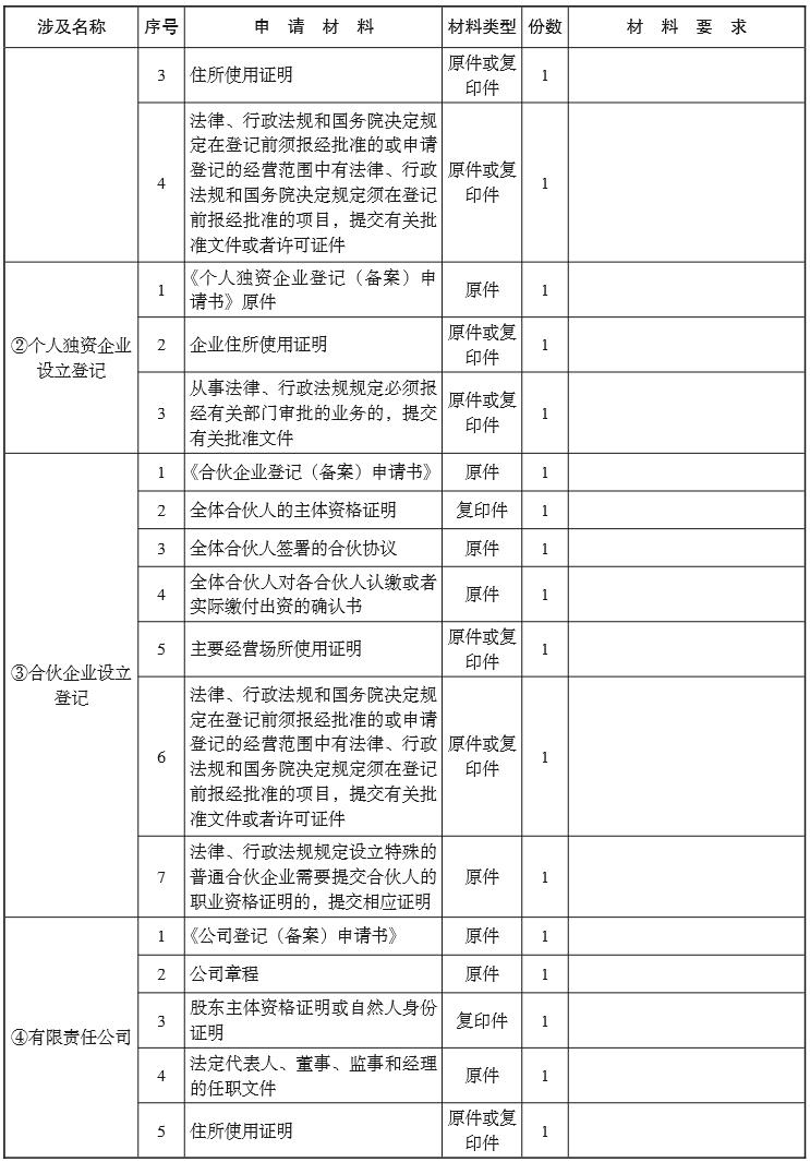(一) 市場(chǎng)主體設立登記;