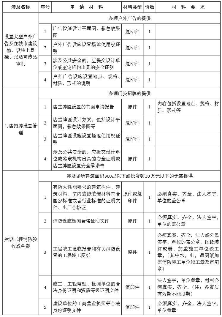 6. 門(mén)店招牌設置管理:在綜合窗口申請時(shí)只需提交電子版材料,紙質(zhì)版在管理人員現場(chǎng)監 管時(shí)提供。