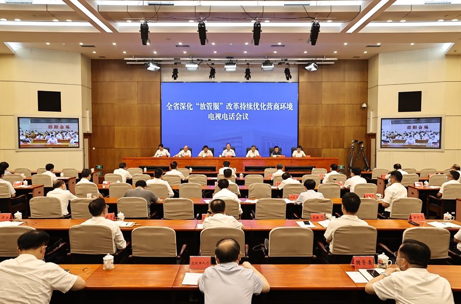 8月29日上午,在全國深化“放管服”改革持續優(yōu)化營(yíng)商環(huán)境電視電話(huà)會(huì )議后,省政府立即召開(kāi)全省電視電話(huà)會(huì )議,貫徹落實(shí)全國會(huì )議要求,部署安排有關(guān)工作。省委副書(shū)記、省長(cháng)毛偉明強調,要深入貫徹習近平總書(shū)記對湖南重要講話(huà)重要指示精神,落實(shí)全國電視電話(huà)會(huì )議部署要求,瞄準一流、抬高坐標、堅定信心,放出活力、管出公平、服出效率,加快打造市場(chǎng)化法治化國際化一流營(yíng)商環(huán)境。