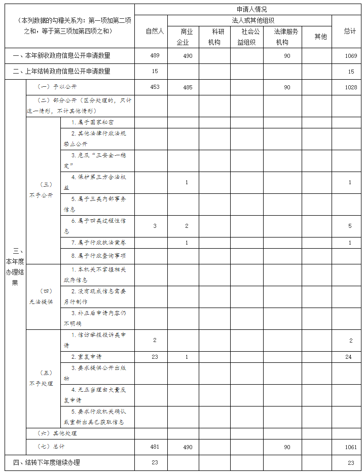 本年報根據2019年5月頒布施行的《中華人民共和國政府信息公開(kāi)條例》(以下簡(jiǎn)稱(chēng)《條例》)編制。年報由總體情況、主動(dòng)公開(kāi)政府信息情況、依申請公開(kāi)政府信息情況、行政復議和行政訴訟情況、存在的主要問(wèn)題及改進(jìn)措施等部分組成。年報中所列數據的統計期限自2019年1月1日起至2019年12月31日止。本年報的電子版可在湖南省自然資源廳門(mén)戶(hù)網(wǎng)站(http:// www.zrzy.hunan.gov.cn)下載。如需咨詢(xún),請與湖南省自然資源廳政務(wù)服務(wù)處聯(lián)系(地址:長(cháng)沙市天心區湘府西路8號,郵編:410004,電話(huà):0731-89991327)。