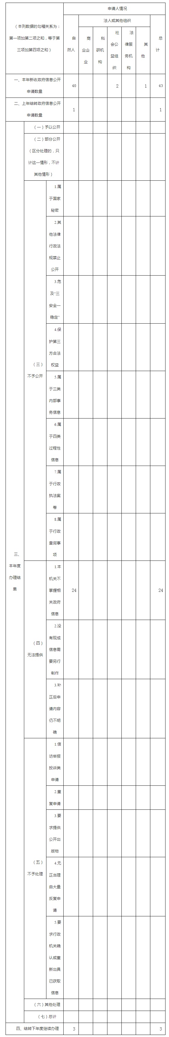 三、收到和處理政府信息公開(kāi)申請情況